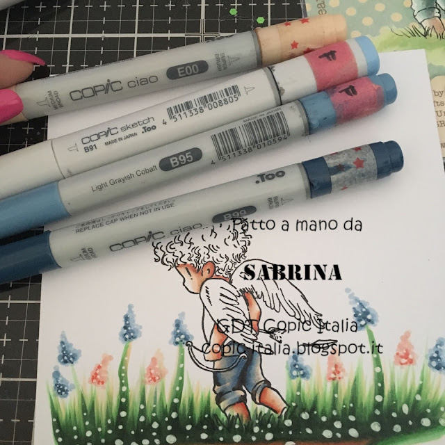 Per le ali utilizzo W-5 segnando dei tratti e sopra passo C00... con B93 traccerò tutto il profilo dell'angioletto e sfumerò con il blender ;-)
